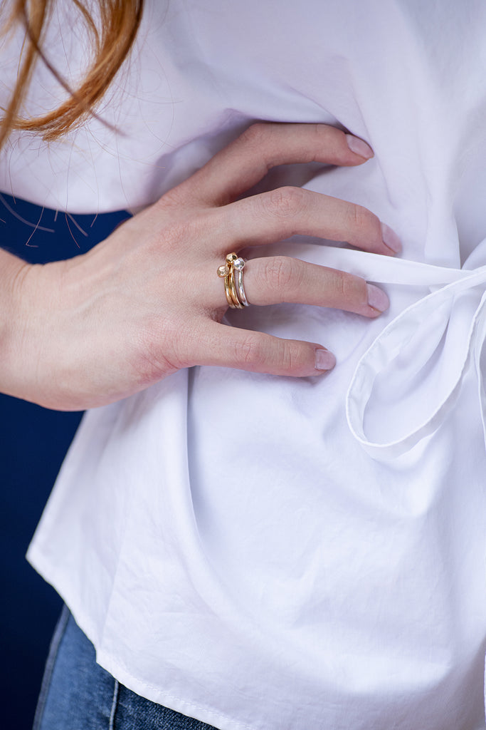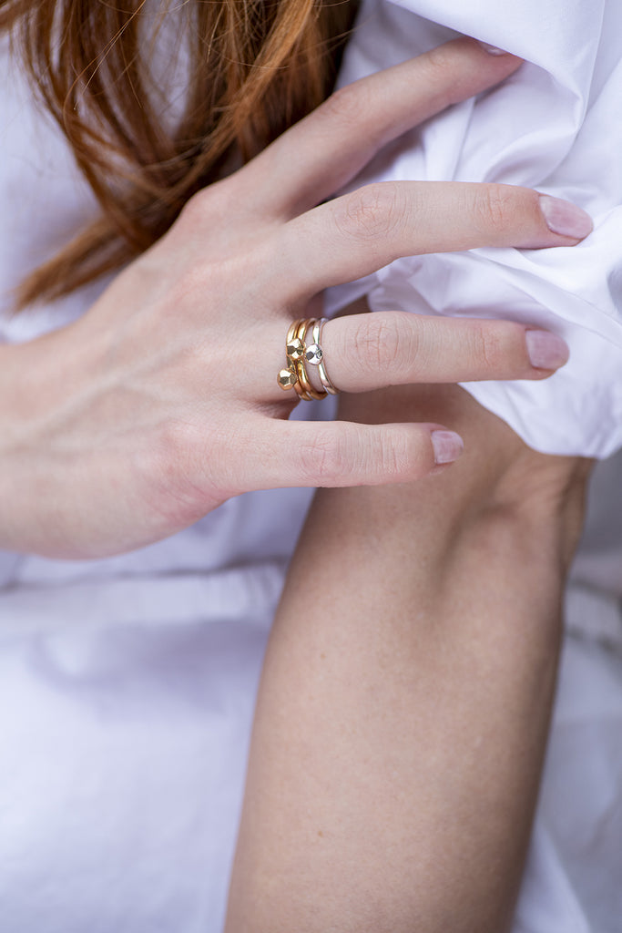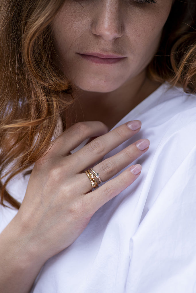 Un solitario che si sa muovere in coppia, sempre brillante. In argento, argento placcato oro o bronzo.